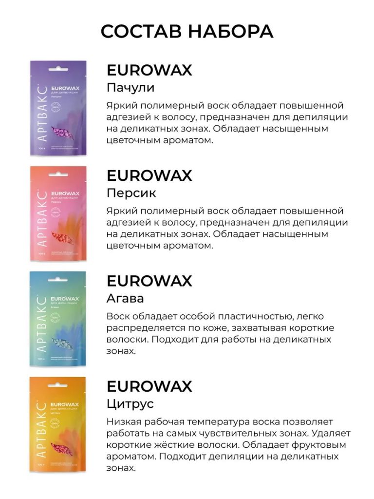 Описание Пленочный воск в гранулах для депиляции АРТВАКС EUROWAX ПЕРСИК 100 г.